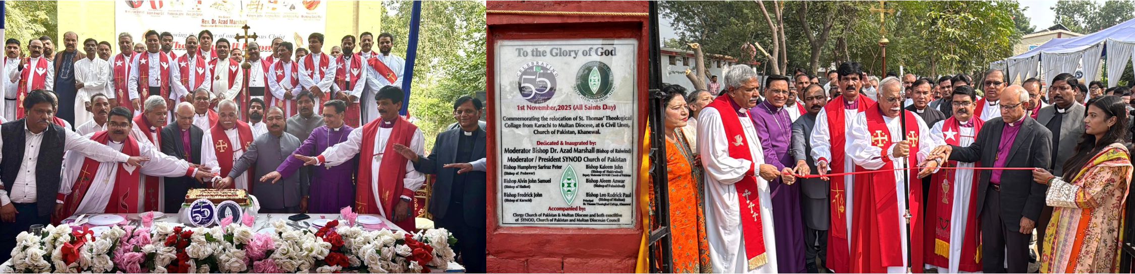 خانیوال (تادیب) چرچ آف پاکستان کی 55ویں سالگرہ کے موقع پریکم نومبر 2025کو موڈریٹربشپ ڈاکٹر آزاد مارشل نے “سینٹ تھامس تھیولوجیکل کالج خانیوال” کا افتتاح کیا۔تقدس مآب بشپ ڈاکٹر آزاد مارشل (ماڈریٹر، چرچ آف پاکستان) اور ساتھ بشپ آف ملتان بشپ ریورنڈ لیو راڈرک پال نے “سینٹ تھامس تھیولوجیکل کالج خانیوال” کا افتتاح کیا۔ اِس تاریخی تقریب میں چرچ آف پاکستان کے بشپ صاحبان، ایم این اے نوید عامر جیوا نے مہمانِ اعزاز شرکت کی۔ سنڈ چرچ آف پاکستان کے ایگزیکٹو ممبران، ڈایوسیس آف ملتان کے پاسبانوں اور دیگر معززین نے چرچ آف پاکستان کی 55 ویں سالگرہ منائی۔
