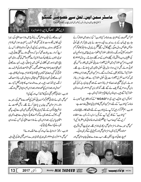 یاد رہے ماہنامہ ’نیاتادیب‘ لاہور/ ملتان ، اکتوبر 2017ءکے شمارے میں ماسٹر سمن ایس لعل کا خصوصی انٹرویوشائع ہو چکا ہے ۔ (انٹرویو کے صفحات لف ہیں)